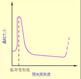 (2)預(yù)先變形度 變形度的影響主要與金屬變形的均勻度有關(guān)。變形越不均勻, 再結(jié)晶退火后的晶粒越大。變形度很小時,因不足以引起再結(jié)晶,晶粒不變。當變形度達到2~10%時,金屬中少數(shù)晶粒變形,變形分布很不均勻,所以再結(jié)晶時生成的晶核少,晶粒大小相差極大,非常有利于晶粒發(fā)生吞并過程而很快長大,結(jié)果得到極粗大的晶粒。使晶粒發(fā)生異常長大的變形度稱作臨界變形度。生產(chǎn)上應(yīng)盡量避免在臨界變形度范圍內(nèi)的塑性變形加工。超過臨界變形度之后,隨變形度的增大,晶粒的變形更加強烈和均勻,再結(jié)晶核心越來越多,因此再結(jié)晶后的晶粒越來越細小。但是當變形度過大(約≥90%)時, 晶??赡茉俅纬霈F(xiàn)異常長大,一般認為它是由形變織構(gòu)造成的。