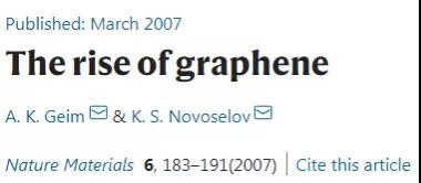 該文2007年由英國(guó)曼徹斯特大學(xué)的A. K. Geim和K. S. Novoselov教授發(fā)表于Nature Materials,而在2010年兩人就因?yàn)榘l(fā)現(xiàn)了石墨烯材料而獲得了諾貝爾物理學(xué)獎(jiǎng),并由此掀起了石墨烯以及各種二維材料的研究熱潮。截至2021年2月17日,該文累計(jì)被引28,528次。
