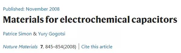 該文2008年由美國(guó)德雷塞爾大學(xué)的Yury Gogotsi和法國(guó)圖盧茲第三大學(xué)的Patrice Simon教授發(fā)表于Nature Materials,是超級(jí)電容器特別是非對(duì)稱超級(jí)電容器的開山之作。截至2021年2月17日,該文累計(jì)被引11,312次。