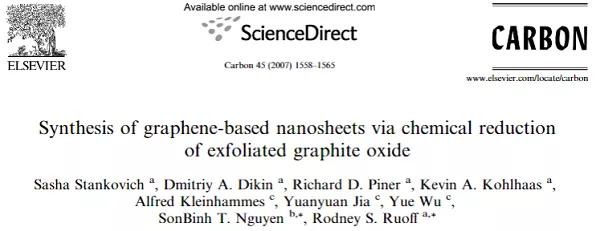 該文2007年由美國(guó)西北大學(xué)的SonBinh T. Nguyen和Rodney S. Ruoff教授等人發(fā)表于Carbon。截至2021年2月17日,該文累計(jì)被引10,520次。