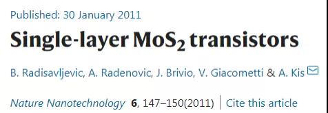 該文2011年由瑞士洛桑聯(lián)邦理工學(xué)院A. Kis教授等人發(fā)表于Nature Nanotechnology。截至2021年2月17日,該文累計(jì)被引9,140次。