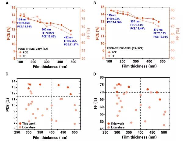 中科院青島能源所The Innovation:側(cè)鏈微調(diào)控誘導(dǎo)雙通道電荷傳輸實現(xiàn)高效厚膜有機太陽能電池