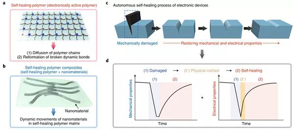 斯坦福大學(xué)鮑哲南教授團(tuán)隊(duì)回顧了自修復(fù)電子材料的發(fā)展,并研究了這些材料如何用于制造自修復(fù)的電子設(shè)備。同時(shí)文中探討了自修復(fù)電子系統(tǒng)的潛在新功能,這些功能通常在傳統(tǒng)電子系統(tǒng)中是不可能實(shí)現(xiàn)的,并討論了為實(shí)際應(yīng)用提供自修復(fù)柔性電子系統(tǒng)的當(dāng)前挑戰(zhàn)。