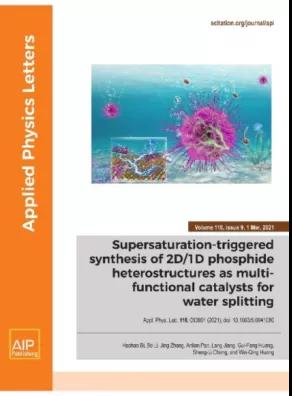 過渡金屬磷化物(TMPs)由于低廉的價(jià)格和優(yōu)異的電催化活性受到越來越多的關(guān)注,被認(rèn)為是替代貴金屬材料的理想材料。近年來,一維納米線/二維納米片復(fù)合材料的合成引起了人們的興趣,因?yàn)榛?D/1D 磷化物的異質(zhì)結(jié)構(gòu)能夠增加活性位點(diǎn)的數(shù)量和加速載流子遷移率,表現(xiàn)出比任何單一成分更顯著的性能。然而由于二維和一維納米結(jié)構(gòu)的生長機(jī)制不同,大多數(shù)二維/一維異質(zhì)結(jié)構(gòu)通常是采用多步驟方法下合成,或存在模板、封蓋劑的情況下形成。因此,在沒有模板輔助的情況下,開發(fā)一種簡單和可控的合成策略來設(shè)計(jì)2D/1D異質(zhì)結(jié)構(gòu)仍然是一個(gè)挑戰(zhàn)。近日,湖南大學(xué)黃桂芳和黃維清教授(通訊作者)、碩士生畢浩浩和博士生李波(共同第一作者)提出了一種簡單合成策略——基于原位過飽和觸發(fā)維度和相控生長機(jī)制——設(shè)計(jì)制備了垂直排列的2D CoFeP 納米片/1D Fe-CoP 納米線(2D/1D CoFeP NSs@Fe-CoP NWs)異質(zhì)結(jié)構(gòu)。研究人員發(fā)現(xiàn)原位制備合成的2D/1D CoFeP NSs@Fe-CoP NWs 由垂直取向的2D納米片與大量的1D納米線構(gòu)成,提供了豐富的延伸邊緣位點(diǎn)和高度暴露的活性位點(diǎn),而且良好的2D-1D界面和高度不連續(xù)空間開放式結(jié)構(gòu)能夠促進(jìn)電荷轉(zhuǎn)移和氣泡的演化。由于這些優(yōu)異的特性,該異質(zhì)結(jié)構(gòu)與FeP納米片和CoP納米線相比表現(xiàn)出顯著的HER和OER性能。此外在電池電壓為1.62 V時(shí),該催化劑實(shí)現(xiàn)全解水電流密度10 mA cm-2。該工作為設(shè)計(jì)多功能和高活性的非貴金屬催化劑提供了一種簡便以及可擴(kuò)展的策略。相關(guān)結(jié)果已在知名期刊Applied Physics Letters (DOI:10.1063/5.0041080)上以封面論文發(fā)表,題為“Supersaturation-triggered synthesis of 2D/1D phosphide heterostructures as multi-functional catalysts for water splitting”