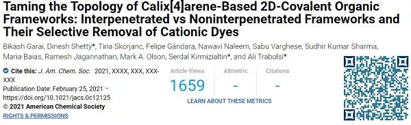 2. J.Am.Chem.Soc.:馴服杯[4]芳烴基二維COFs的拓撲結構:互穿與非互穿框架及其對陽離子染料的選擇性去除