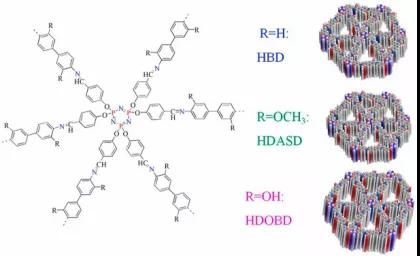 共價有機框架是新興的多孔有機材料,具有特殊的結構特征,在碘捕獲和光譜領域有潛在的應用。然而,還沒有報道過同時具有碘吸附和熒光傳感的雙功能COFs。這項研究報道了三種雙功能COFs的構建,它們是通過席夫堿縮聚物與具有不同取代基(-OCH3和–OH)的環(huán)磷腈基醛(NOP-6-CHO)和聯(lián)苯胺(BD)形成的。這些COFs顯示出高的熱穩(wěn)定性并顯示出不同的結晶度。由于在鏈接部位中引入取代基,比表面積、孔體積和結晶度得以降低。氫鍵相互作用顯著提高了薄膜的微觀有序度和結晶度。值得注意的是,所制備的COFs通過對碘分子表現(xiàn)出優(yōu)異的吸附性能,其吸附容量分別高達4.41、3.78和4.47g·g-1。當懸浮在極性有機溶劑中時,三種COFs在紫外光下都具有高的熒光特性。此外,它們可以高靈敏和高選擇性地檢測對硝基苯酚和碘。