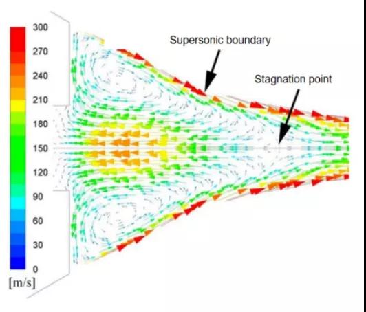 圖 2 Fluent 計(jì)算模擬的霧化流場(chǎng)結(jié)果(速度場(chǎng))