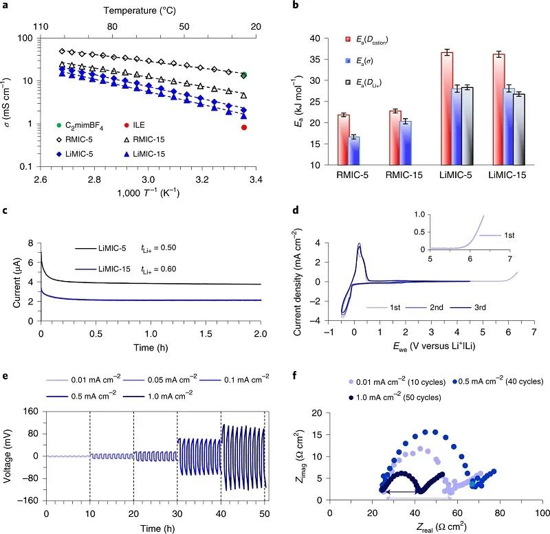 (a)用于提取RMICs和LiMICs中離子電導(dǎo)率的活化能(Ea)的Arrhenius圖;