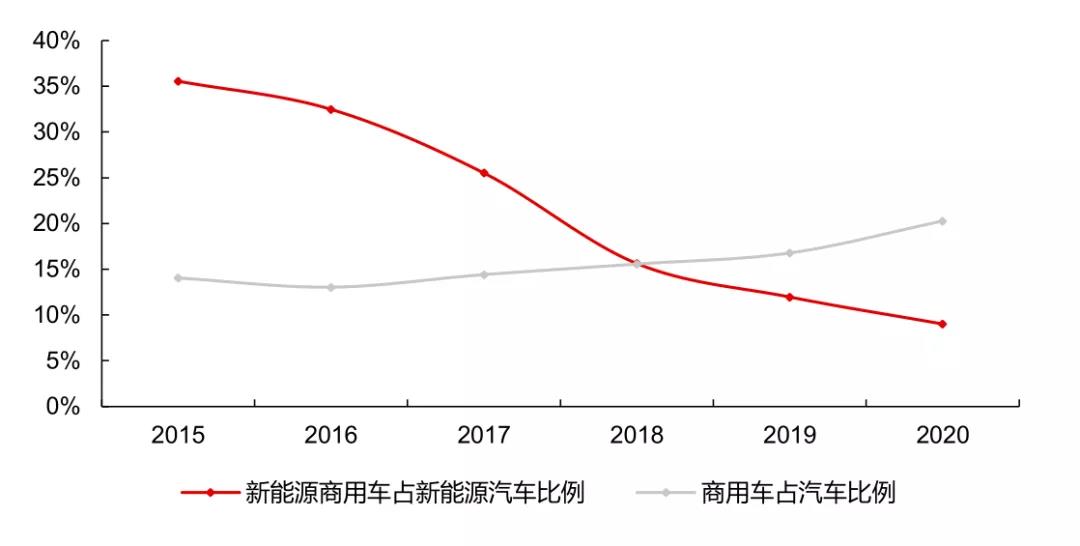 毋庸置疑,國內(nèi)汽車的電動化成效顯著,銷量屢創(chuàng)新高,但是電動車的增長主要來自乘用車,商用車幾乎沒有增長,尤其是中長途的重卡領(lǐng)域,電動化進(jìn)展緩慢,甚至受阻。過去幾年,新能源商用車在新能源內(nèi)部滲透率不升反降,到了2020年新能源商用車的占比僅有9%。
