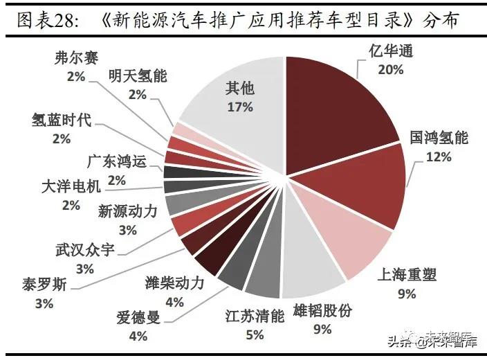 配套車型居行列第一,市占率高龍頭地位穩(wěn)固:根據(jù) 19 年發(fā)布的《新能源汽車 推廣應(yīng)用推薦車型目錄》,被納入目錄的燃料電池商用車型共 185 款,其中配套 公司生產(chǎn)發(fā)動機系統(tǒng)的商用車車型共計 37 款,占比高達(dá) 20%,超出第二名國鴻 氫能 8%。公司燃料電池發(fā)動機市場占有率穩(wěn)定在 20%左右,2019 年全國燃料電 池汽車銷量 2737 輛,同期億華通燃料電池發(fā)動機銷量 498 套,龍頭地位穩(wěn)固。