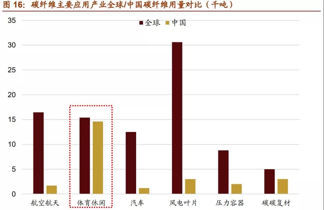 此外,碳纖維在其他應(yīng)用領(lǐng)域還有很大潛力可以挖掘。以主要競爭對(duì)手鋁合金為例,碳 纖維和鋁合金同屬替換鋼材的輕量化材料,碳纖維在強(qiáng)度、化學(xué)穩(wěn)定性等性能上都占優(yōu), 并且在飛機(jī)部件、高性能汽車車架、自行車架等產(chǎn)品相比鋁合金都有更好的表現(xiàn)。但受 累于高昂的價(jià)格,目前碳纖維應(yīng)用大多局限于高附加值產(chǎn)品。2016 年世界鋁材年需求 量約是碳纖維的 500-600 倍,行業(yè)產(chǎn)值約為 50 倍,且受益于汽車工業(yè)的發(fā)展鋁材需求 近年也在快速增長。隨著技術(shù)的進(jìn)步壓低碳纖維的成本,未來碳纖維還有廣闊的市場(chǎng)空 間。