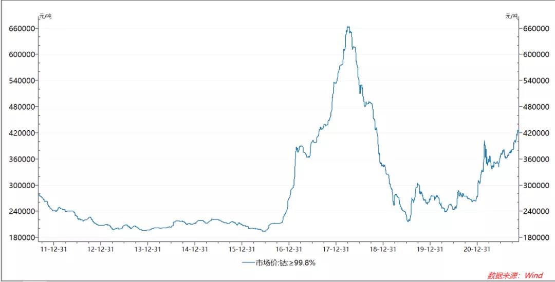 就以鈷為例,盡管在過(guò)去的一段時(shí)間里經(jīng)歷了一段極為瘋狂的上漲,但其實(shí)距離在2018年初的高位相差甚遠(yuǎn)。而且近期的原材料價(jià)格暴漲,與疫情造成的全球性供應(yīng)鏈-物流雙重危機(jī)密不可分,盡管如今我們無(wú)法預(yù)測(cè)危機(jī)什么時(shí)候會(huì)緩解,但終究是不能忽視的風(fēng)險(xiǎn)。