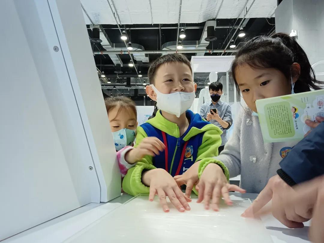 孩子們在體驗常溫下的水凝膠材料質(zhì)感。