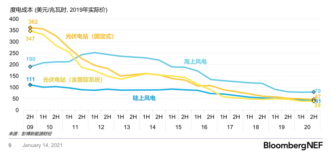 全球風(fēng)電、光伏基準(zhǔn)度電成本