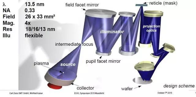 根據(jù)瑞利公式(分辨率=k1·λ/NA),這么短的波長(zhǎng)可以提供極高的光刻分辨率。在1985年左右已經(jīng)有半導(dǎo)體行業(yè)科學(xué)家就EUV技術(shù)進(jìn)行了理論上的探討并做了許多相關(guān)的實(shí)驗(yàn)。