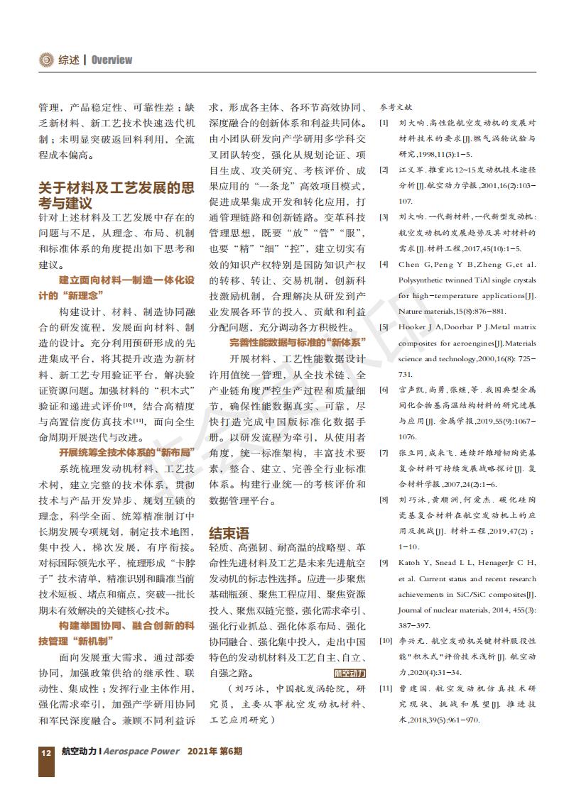 航空發(fā)動(dòng)機(jī)對(duì)材料、工藝有著極其嚴(yán)苛的要求。材料、工藝在某種程度上決定了發(fā)動(dòng)機(jī)的性能和特性。發(fā)動(dòng) 機(jī)推重比的提高將更加依賴(lài)輕質(zhì)、高強(qiáng)韌、耐高溫的戰(zhàn)略型、革命性先進(jìn)材料及工藝。