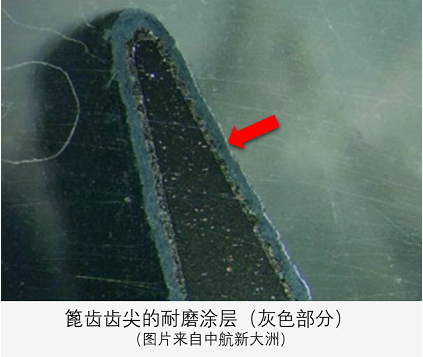 既然有“玻璃心”涂層,那肯定也有“勇敢的心”——耐磨涂層(Wear Resistant Coating),主要應(yīng)用于需要防止摩擦磨損以及沖擊磨損的發(fā)動機零部件,例如軸類零件、W封嚴環(huán)以及低渦葉片緣板的配合面。當然,在蜂窩封嚴系統(tǒng)中,也存在著耐磨涂層,用來防止篦齒的齒尖發(fā)生磨損。還有一種耐磨涂層,多用于軍用航空發(fā)動機的壓氣機葉片,用來面對惡劣環(huán)境下的抗沖蝕磨損。