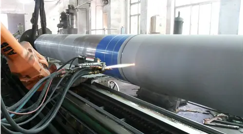 高溫噴涂工藝是將熔融狀態(tài)的噴涂材料,通過高速氣流,使其霧化,噴射在被凈化及粗化的零件表面上,形成噴涂層的一種表面加工方法。噴涂合金顆粒通過受熱加速后,撞擊到基體表面形成涂層的過程中,熔融狀態(tài)的或高塑性狀的粉末顆粒,以一定的飛行速度撞擊在基體上與基體相互作用,是形成涂層的重要階段?[1]??。技術(shù)簡介??熱噴涂是指將涂層材料加熱熔化,用高速氣流將其霧化成極細(xì)的顆粒,并以很高的速