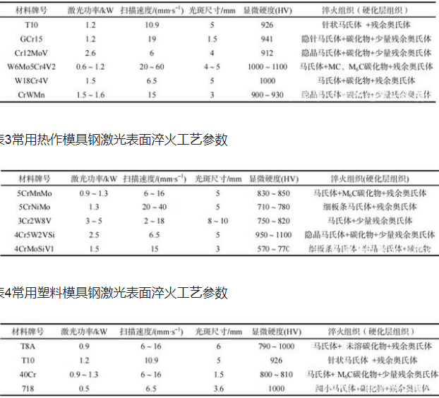 表2常用冷作模具鋼激光表面淬火工藝參數