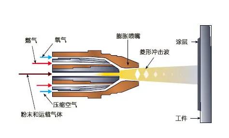 超音速火焰噴涂是一種新型高能火焰噴涂方法,通常被稱作HVOF(High velocity oxygen fuel)特點是:火焰的流動速度極快,超過聲音的傳播速度,可達2200m/s,這要比普通熱噴涂工藝的焰流速度快5~10倍。