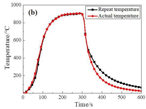 圖 6 熱障涂層在升降爐中的溫升重復(fù)曲線與實(shí)際溫度曲線對(duì)比: (a) 吸力面; (b) 壓力面