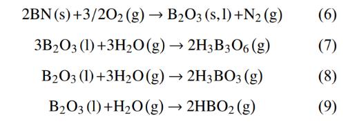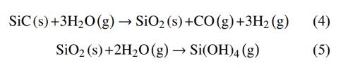 SiC/SiC 復(fù)合材料在水氧環(huán)境下,除了與氧氣發(fā)生反應(yīng)外,還會與水蒸氣發(fā)生反應(yīng),其中 SiC 基體的反應(yīng)通常是: